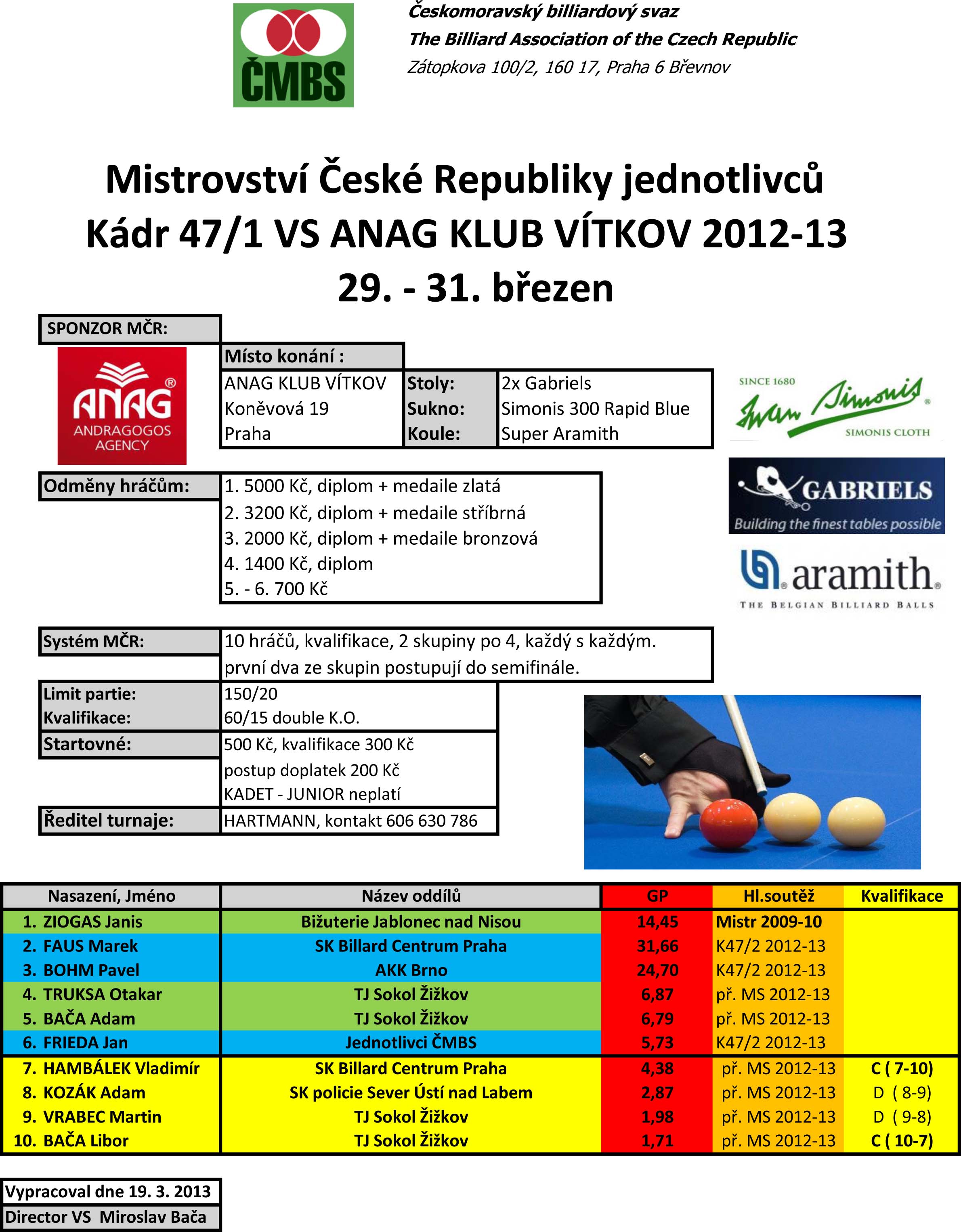 25. 03. 2013 Mistrovství České republiky Kádr 47/1
