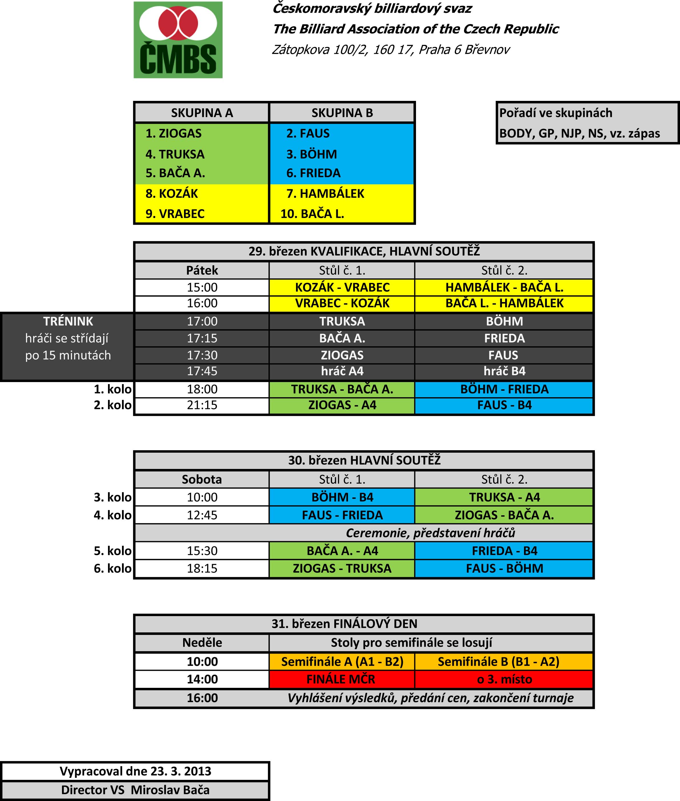 Mistrovství České republiky v neděrovém karambolu v disciplíně Kádr 47/1 proběhne o víkendu 29.–31. března v klubu ANAG v Praze na Žižkově, Koněvova 19. Finále v neděli ve 14 hod.